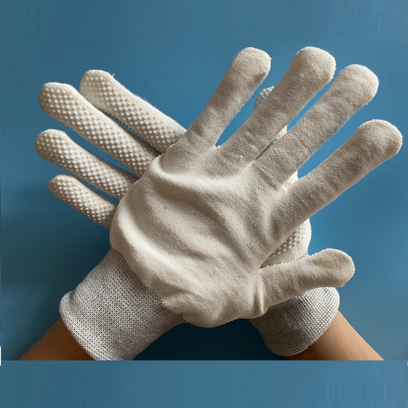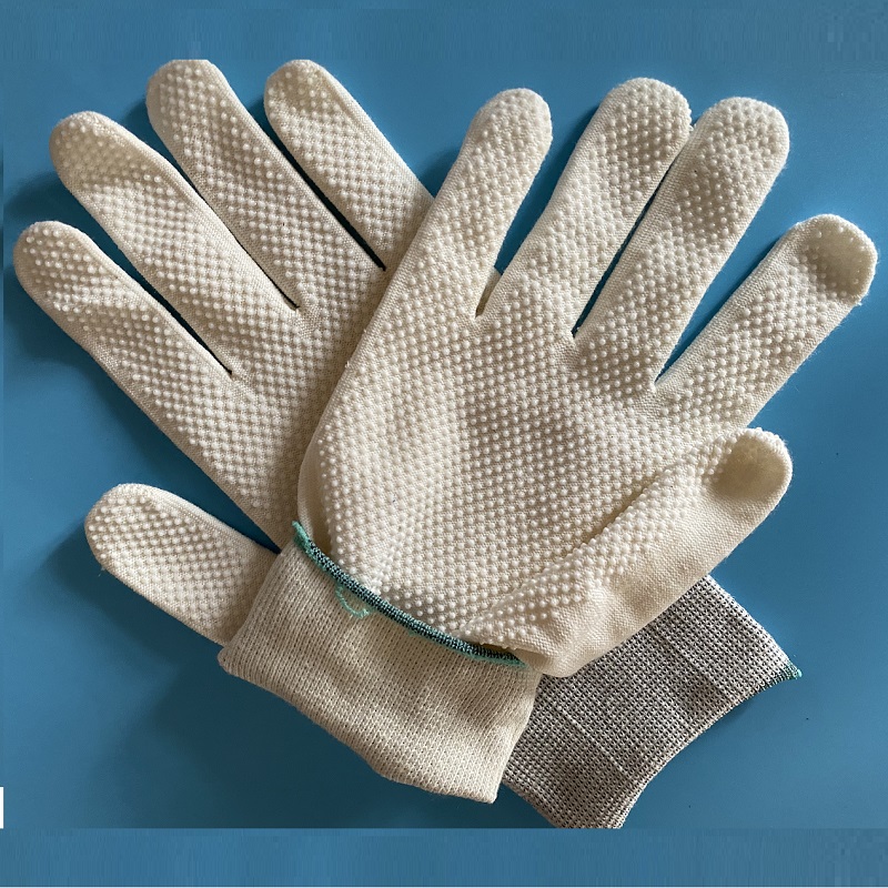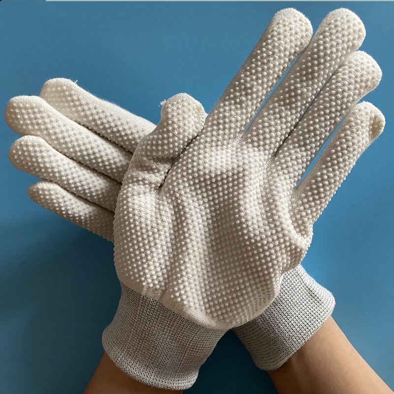 15 Gauge Knitted White Polyester Cotton Single Double Side PVC Vinyl Dotted Safety Working Gloves For Automotive